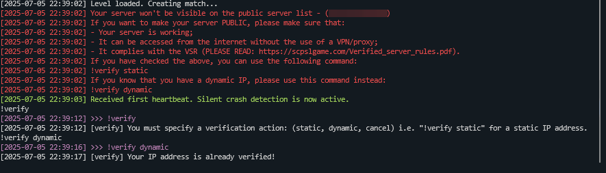 !verify dynamic (or !verify dynamic if using dynamic IP from host)